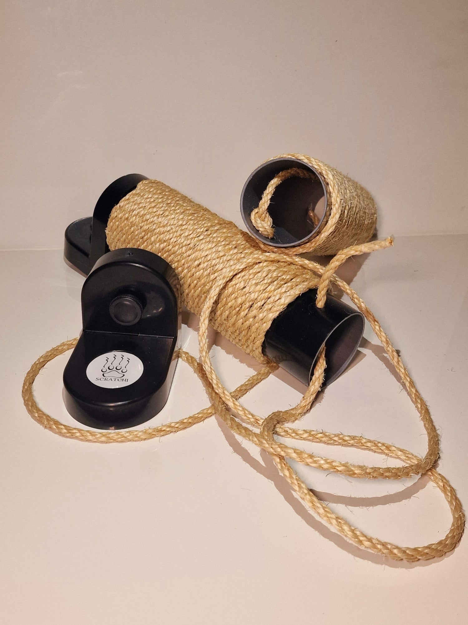 Scratchi is incredibly easy to refill with our TensionLock system. Simply pull out the old rope, wrap the new one through the pre-made holes, and let the natural tension create a sturdy, bark-like structure. Tie a knot before and after you finish wrapping the rope to hold it in place—no glue, staples, or tools required. It’s quick, secure, and mess-free maintenance!