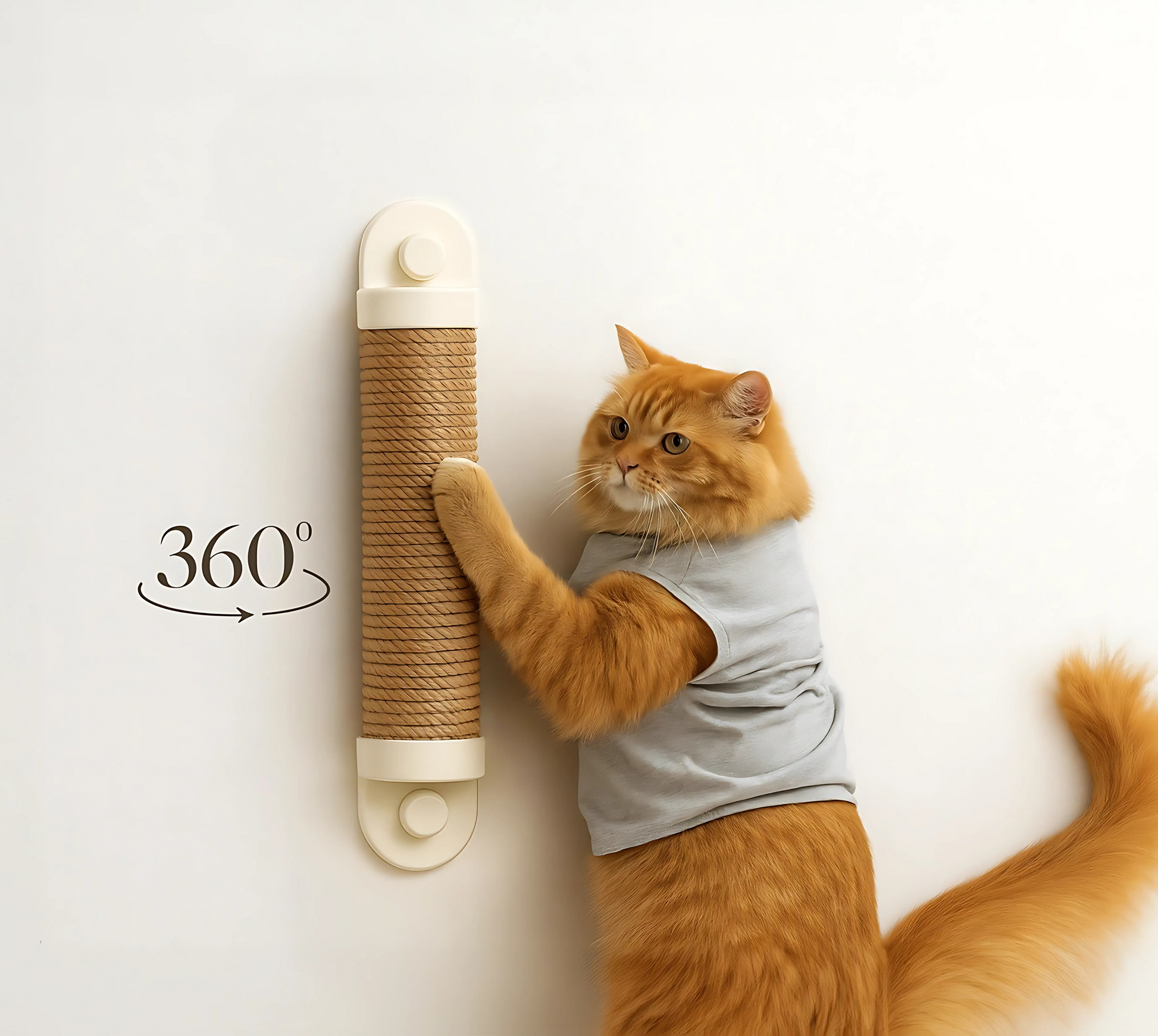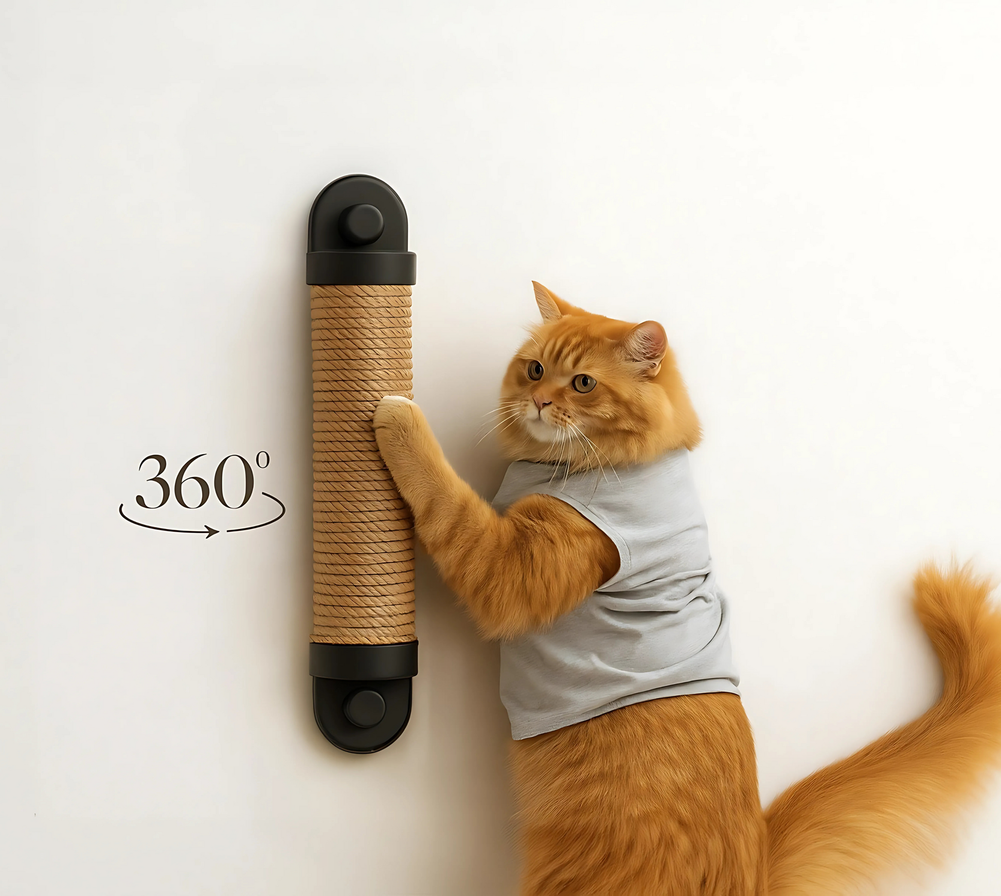 Give your cat the ultimate scratching experience with the SCRATCHI 360° Cat Scratching Post - a space-saving, wall or window-mounted solution designed for modern homes and happy paws. Made with natural 6mm sisal rope, this scratcher promotes healthy claws while protecting your furniture.
