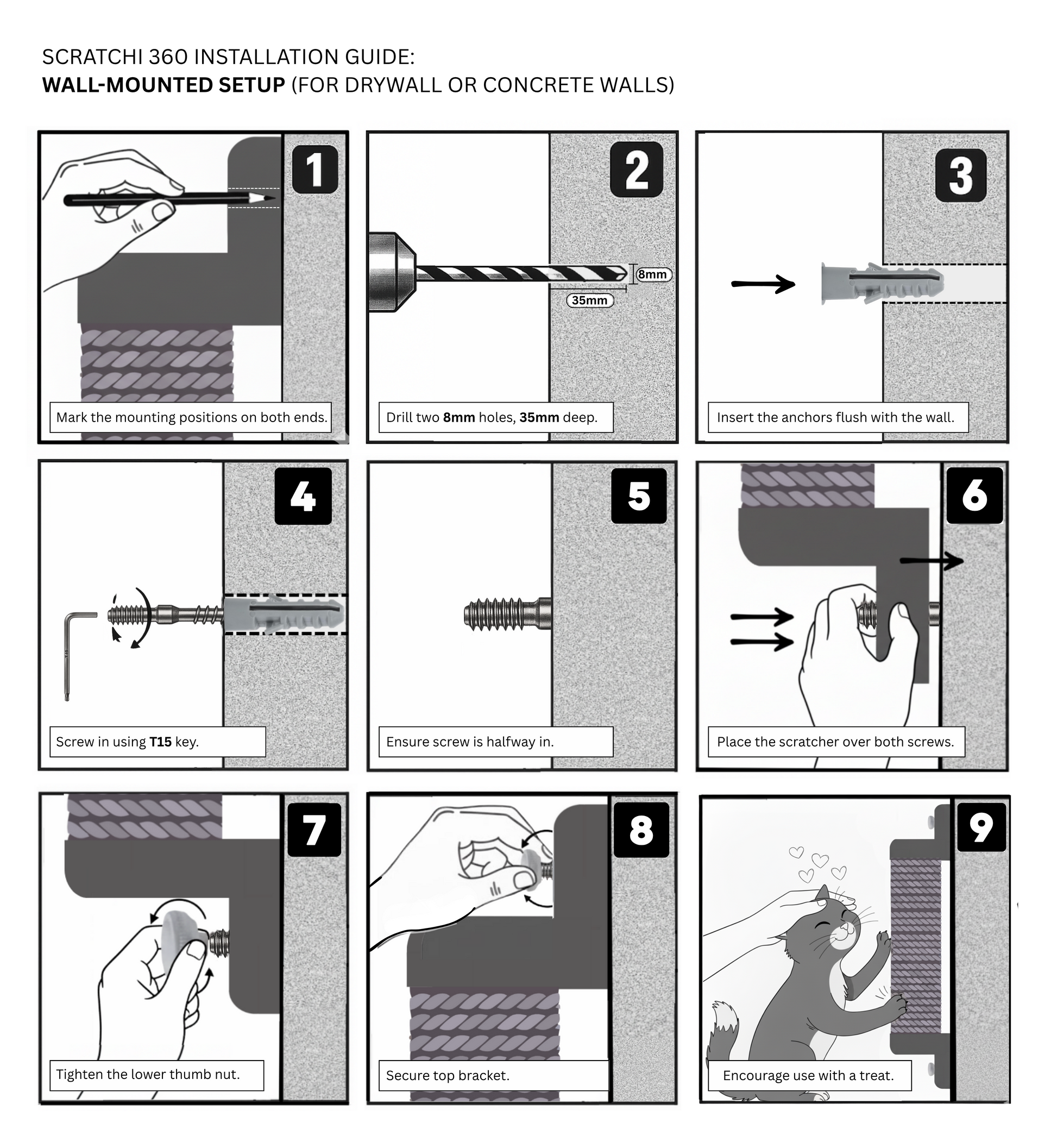 Cat Scratcher, Reusable Scratching Post, Cat Tree, Cat Furniture, Space-Saving Wall & Window-Mounted, Smart Design, Natural 6mm Sisal | Cat-first Product